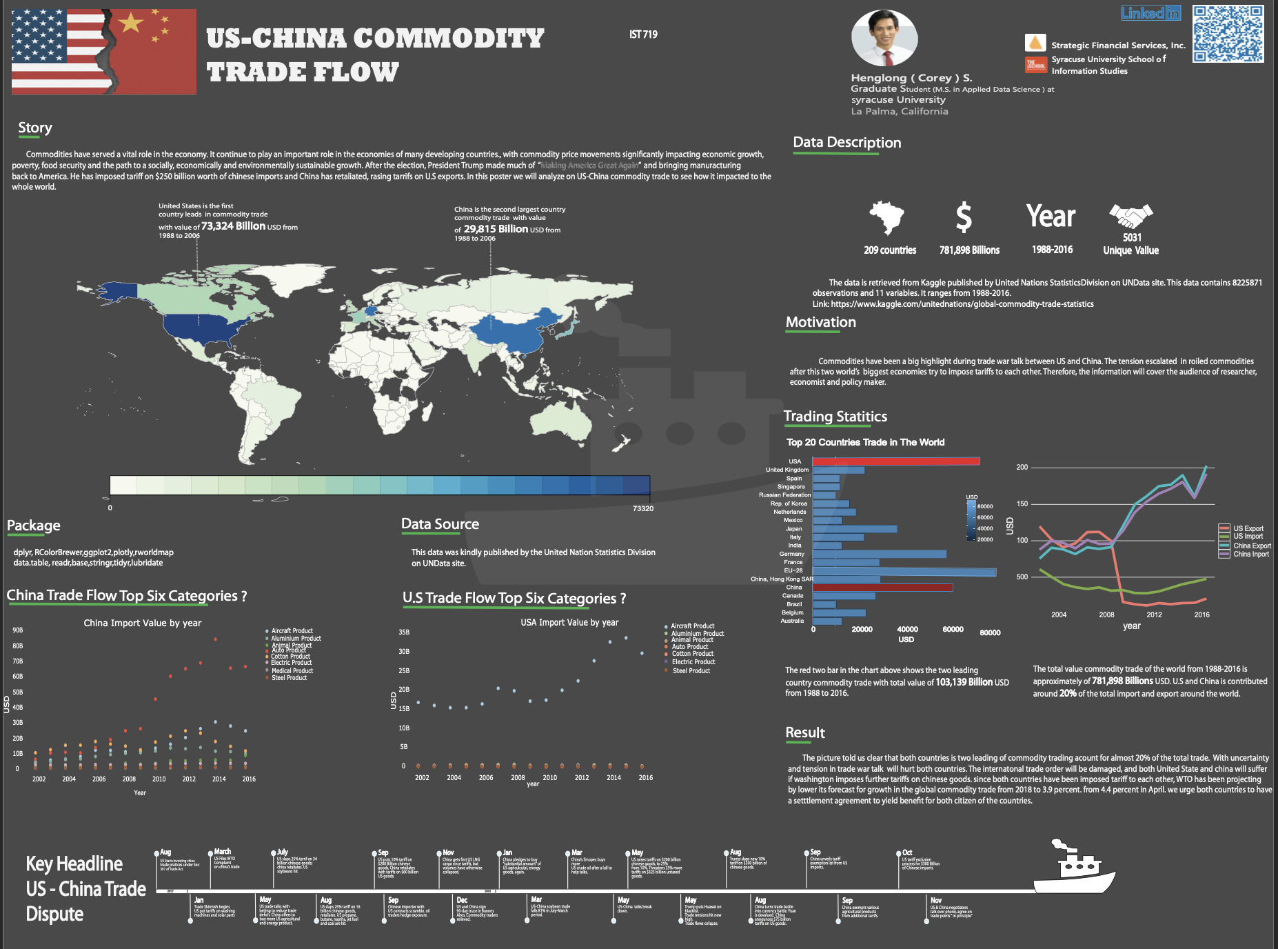 Global Commodity Trade Statistics This assignment deal with visualization of global commodity trade statistics which is a collection of 5,000 commodities across most countries in the world over the last 30 years. The goal is to find the best interesting factors from this dataset to give the audience most insightful information. Dataset description: This file were provided by United Nation Statistics Division on the UNData site http://data.un.org/Explorer.aspx.